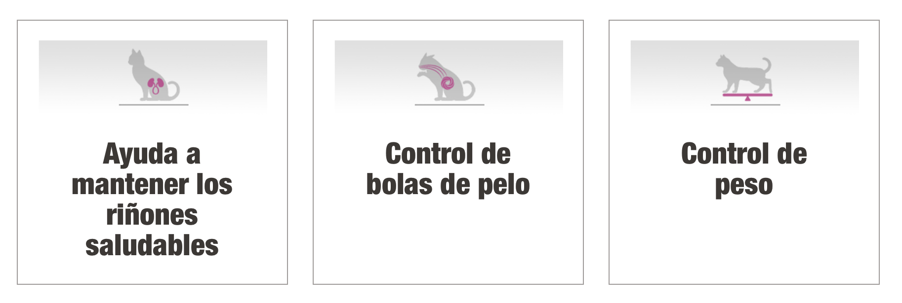 Carne de salmón, harina de subproductos de pollo, arroz, gluten de maíz, harina de soya, gluten de trigo, fibra de soya, grasa animal (res y/o pollo y/o cerdo) preservada con tocoferoles mezclados (fuente de vitamina E), celulosa, digesto animal (hidrolizado de subproductos de cerdo y/o pollo), inulina, huevo en polvo, harina de pescado, ácido fosfórico, cloruro de potasio, levadura seca de cervecería (inactiva), cloruro de colina, sal, carbonato de calcio, ortofosfato de calcio, L-arginina, taurina, DL-metionina, L-lisina, ácido ascórbico (fuente de vitamina C), beta-caroteno, sulfato de zinc, proteinato de zinc, sulfato ferroso, suplementos vitamínicos (A, D-3, E, B-12), suplemento de riboflavina, niacina, pantotenato de calcio, sulfato de manganeso, proteinato de manganeso, biotina, mononitrato de tiamina, ácido fólico, sulfato de cobre, proteinato de cobre, hidrocloruro de piridoxina, complejo sódico de bisulfito de menadiona (fuente de actividad de vitamina K), iodato de calcio, selenito de sodio.